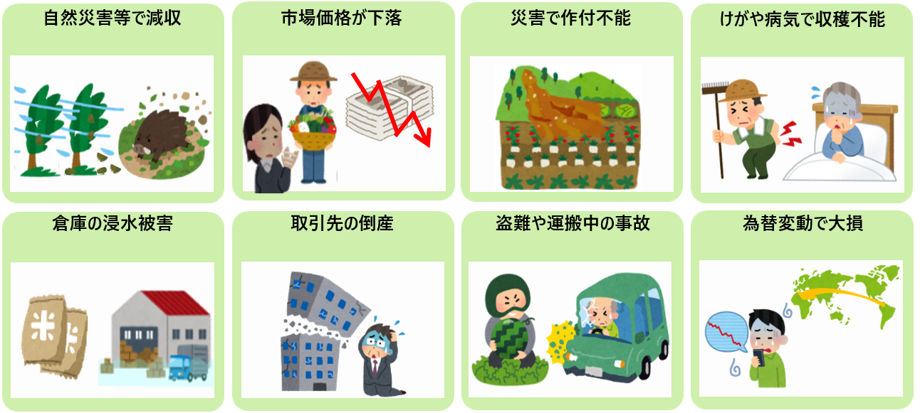 自然災害や価格低下だけでなく農業者の経営努力では避けられない収入減少を補償する保険です。